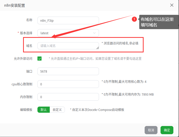 - 在docker应用商店选择n8n,n8n 是一个开源的工作流自动化工具