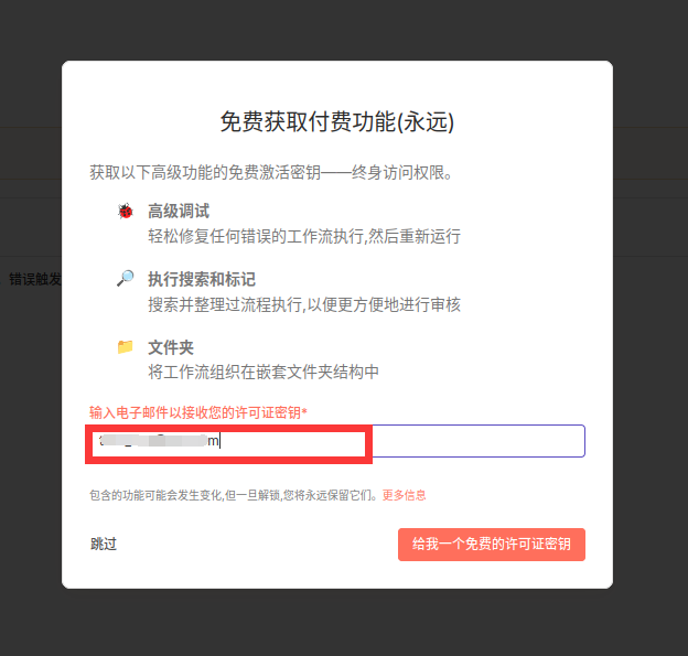 - 点击安装,设置n8n账号,输入激活码永久免费使用