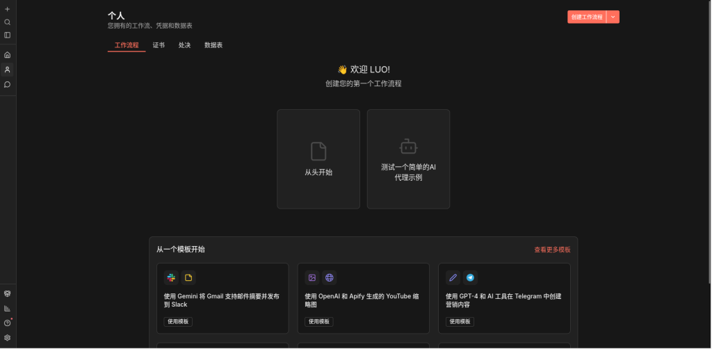 接下来就是n8n界面是这样的