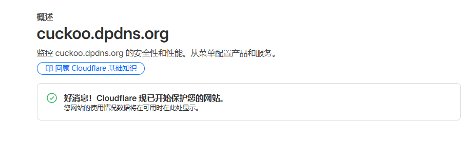过几分钟点击你的域名就会看到,好消息,cloudflare现在开始保护您的网站
