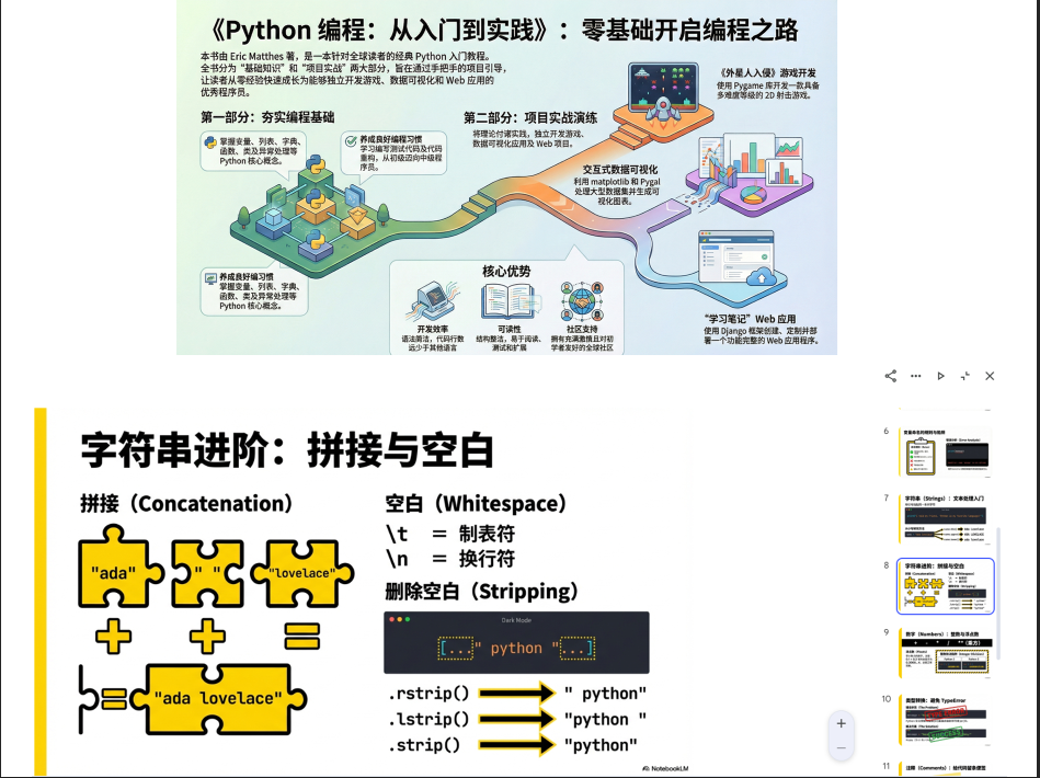 我这里是一份ptf文件,内容是关于Python编程从入门到精通,一共有20章内容,如果自己看完这本书,并且掌握里面的内容可能需要花一段时间,这里我们就可以使用NotebookLM知识库来协助我们,我们直接来演示它的功能
