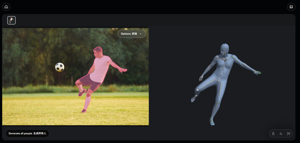 • SAM 3D Body(人体专项重建): 这是一个专门针对人类的精细化模型。它能从一张照片中精准还原人体的姿态、体型甚至衣物褶皱,直接用于虚拟试衣或数字人生成。