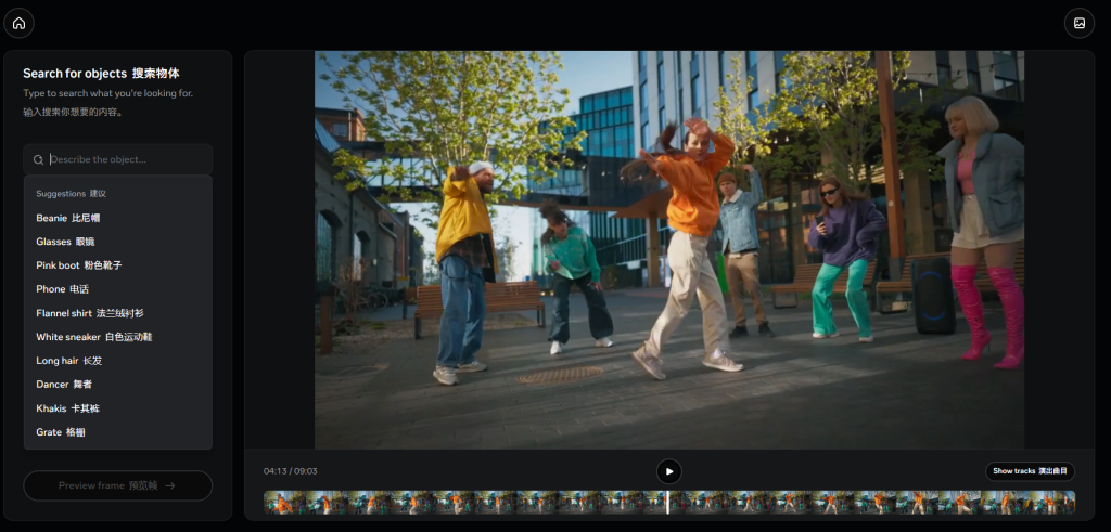 • 多模态交互: 你不仅可以用鼠标点击视频里的物体,还可以直接告诉它:“追踪那个穿红衣服正在跑步的人”。SAM 3 能听懂自然语言指令,实现了 NLP 与视觉的完美融合。