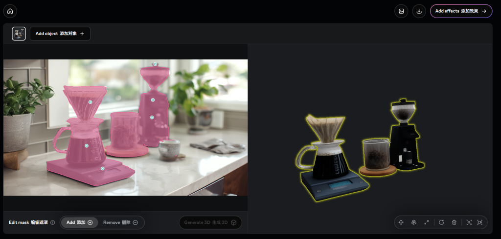 更多好玩的功能,还需要大家亲自去探索,它的2D转3D功能确实非常强大,只需要点击图片中的物体,AI就能自动识别出3D模型,速度非常快,对于3D建模的用户来说简直就是一把利剑。